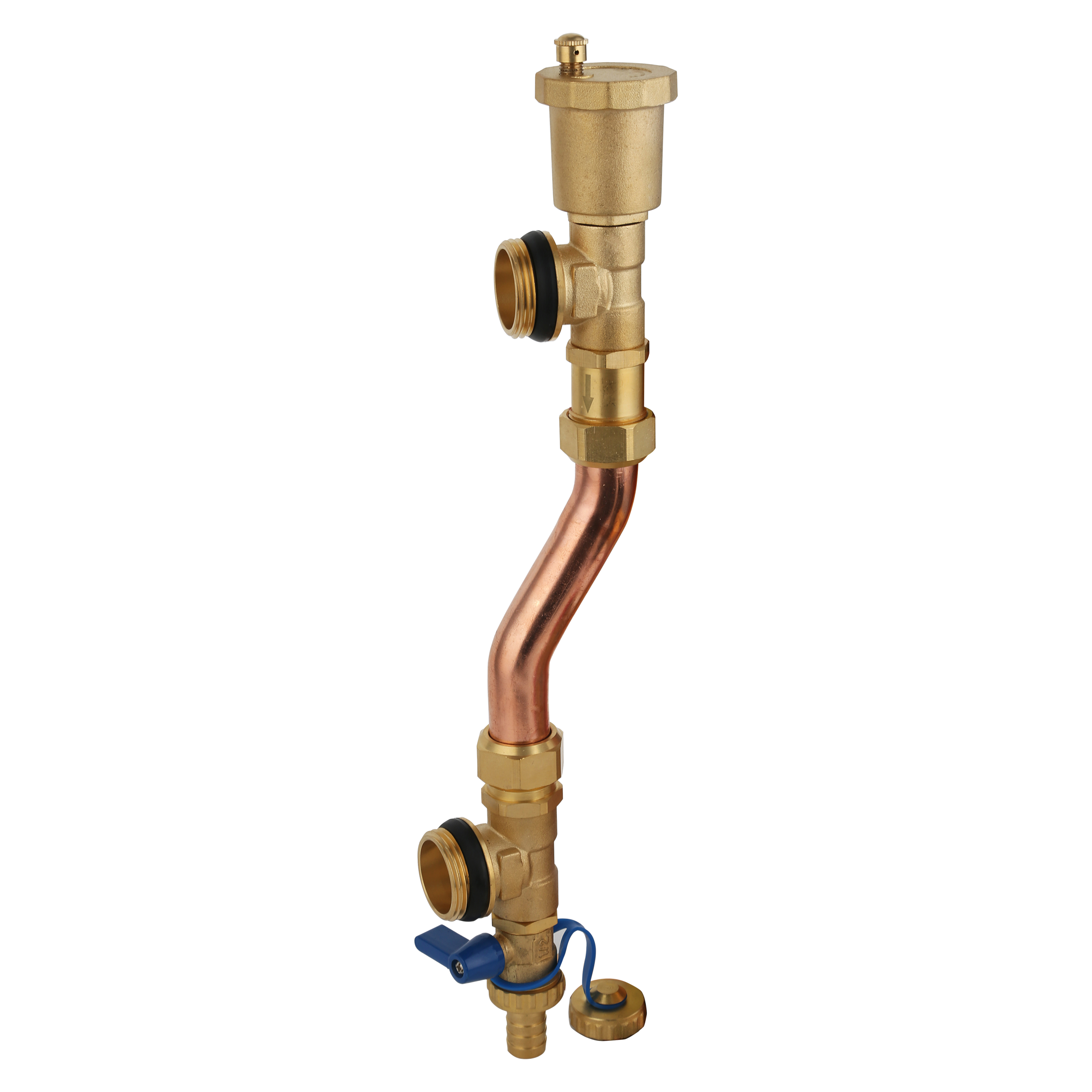 上部自动排气阀可自动排出分集水器内部的微小气泡;下部手动排污阀可直接将分集水器内部的重金属、杂质排出。